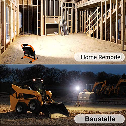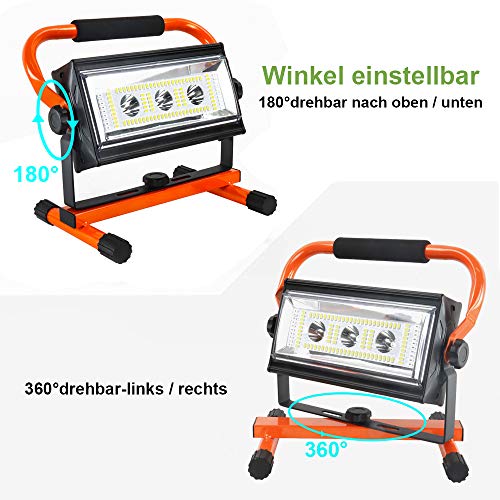 Baustrahler, Orthland Led Baustrahler Akku 80W mit USB Ausgang-Ports, Arbeitsleuchte mit 6 Dimmstufen(300 bis 4800 Lumen…