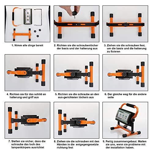 【Solide Gebaut und IP54 Wasserdicht】 Rostschutzfarbe mit dem hochwertigen Aluminiumständer und schäumender Griffabdeckung bieten bei Bedarf einen starken Halt. Gebaut mit dem Spritzschutzstandard IP54, geeignet für eine Vielzahl von Anwendungen: Lager, Baustelle, Anlegestellen, Garage / Garten usw.