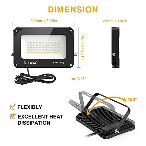 Onforu 2er 50W LED Strahler Außen mit Stecker, 5000LM Superhell LED Fluter Flutlicht, IP66 Wasserdicht Außenstrahler…