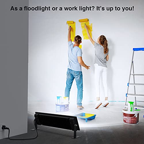 【BREITE ANWENDUNG】 Der Flutlichtstrahler verfügt über eine Halterung, die an Wand, Boden und Decke angebracht werden kann. Geeignet für Garten, Dach, Garagen, Hof, Spielplatz usw., kann auch als Baustrahler in Industrie, Werkstatt, Arbeitsplätzen usw. verwendet werden.