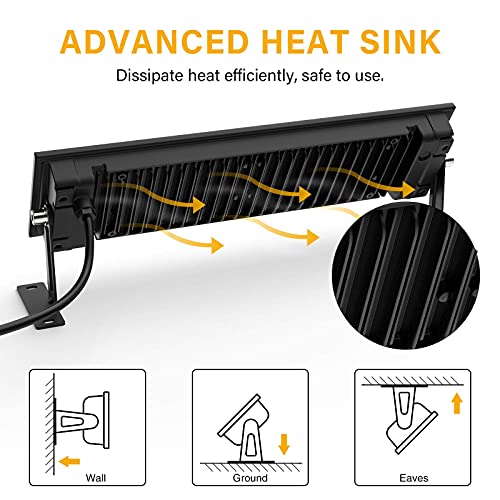 【EFFIZIENTE WÄRMEABLEITUNG】Das Lamellenkühlkörperdesign auf der Rückseite und das hochwertige Aluminiumgehäusematerial sorgen für eine effektivere Wärmeableitung. Dies schützt das Innere des Flutlichts vor Überhitzung und verlängert die Lebensdauer des Flutlichts. Mit IK07 Schlagfestigkeitsklasse kann dieser LED Scheinwerfer im Außenbereich unbedenklich eingesetzt werden.